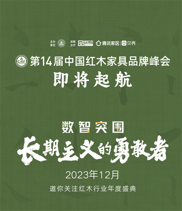 12月,红木行业期待已久的盛宴即将开启。第14届红木家具品牌峰会,将以“数智突围,长期主义的勇敢者”为主题,吹响集合的号角。同期举办的第14届红木家具品牌论坛也将盛大开启,让我们携手期待这场灼热情怀的精彩绽放!