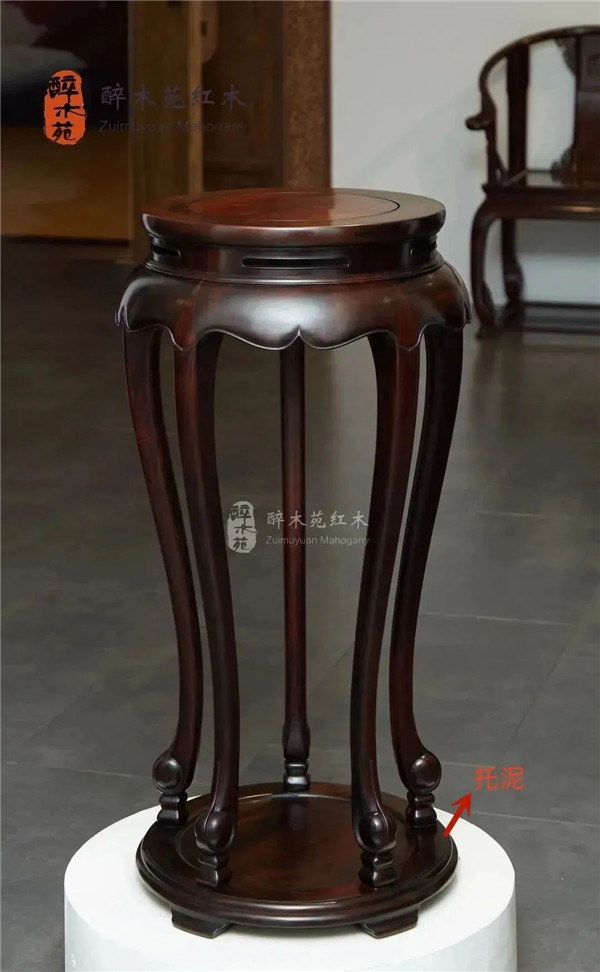 “托泥”是指设在几、案、桌腿下的垫木,形状一般与家具的面呼应,常见的有圆形,方形,海棠、梅花形等。