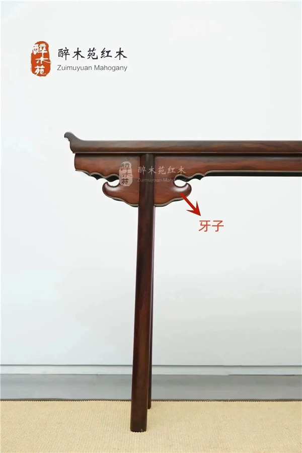 “牙子”是家具立木与横木交接处,施以各式纹样的牙子,一般横向较长的叫牙条,角上短小的叫花牙。