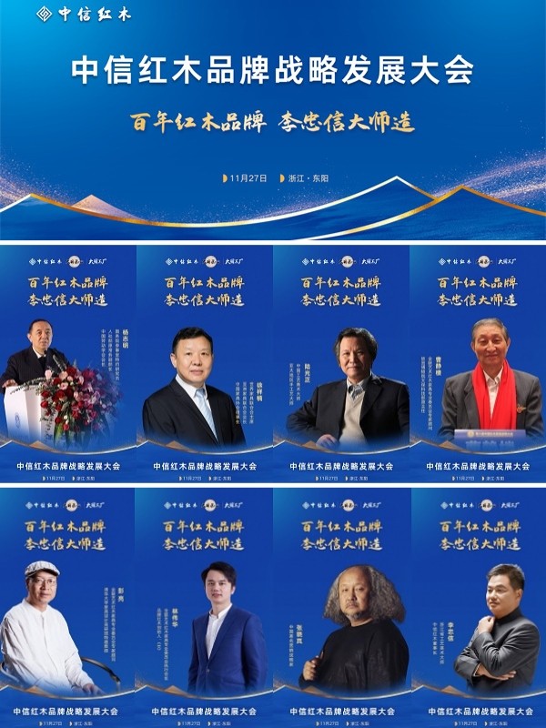 为了进一步推动品牌的发展,11月27日,中信红木将举行主题为“百年红木品牌李忠信大师造”品牌战略发展大会。本次大会邀请了国务院参事室特约研究员、人社部原常务副部长、中国劳动学会会长杨志明,世界家具联合会主席、亚洲家具联合会会长、中国家具协会理事长徐祥楠,世界家具联合会秘书长,亚洲家具联合会副会长兼秘书长,中国家具协会副理事长兼秘书长屠祺,中国工艺美术大师、亚太地区手工艺大师陆光正,全联艺术红木家具专业委员会专家顾问、故宫博物院文保科技部原主任曹静楼,全联艺术红木家具专业委员会专家顾问、清华大学家具设计高研班特邀教授彭亮,全联艺术红木家具专业委员会执行会长、品牌红木创始人、CEO林伟华,中国著名营销战略家张晓岚等来自全国各地的红木家具行业泰斗、专家领导和经销商代表,将齐聚浙江东阳,共同探讨品牌战略升级的策略和方法。这次大会将为中信红木品牌注入新的活力,使其在竞争激烈的市场中更具竞争力。