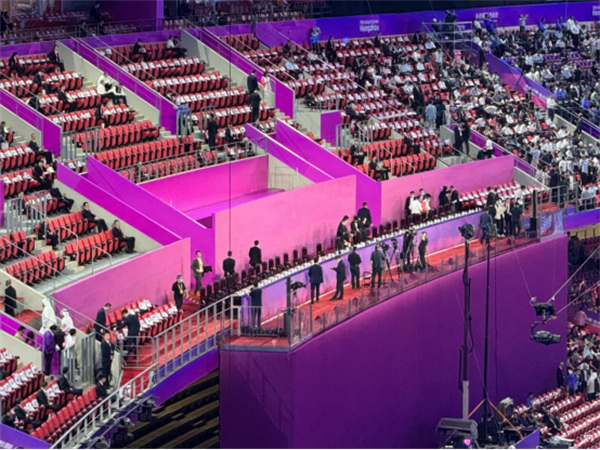 9月23日晚,杭州第19届亚运会在杭州奥体中心“大莲花”盛大开幕,光华夺目。国家领导人莅临现场宣布亚运会开幕,并在“大莲花”贵宾厅接待国际贵宾。