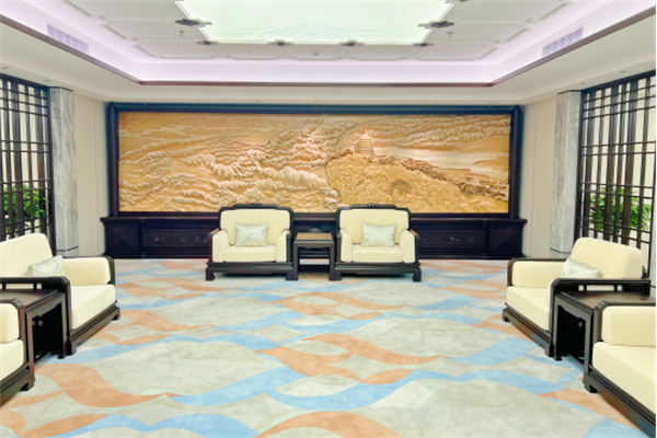 本次贵宾厅整体装修与所有家具秉承亚运会环保理念,主要展现大国气韵,杭州潮涌精神,与开幕式主题《潮涌亚细亚》相契合。所有单品家具及配套软体纹样也以“钱塘潮涌”为主题设计。