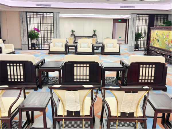 由中国大运河紫檀博物馆建造运营方,旭东红木团队所打造的主席台桌椅也进入人们视野。