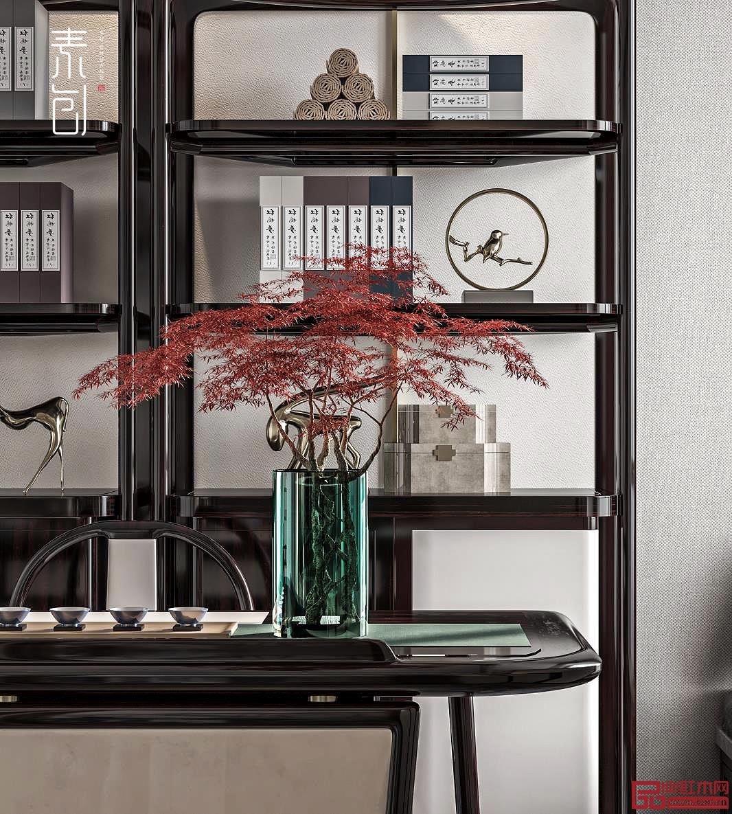 [摘要]素创家居东方简奢家具,选用条纹乌木打造的新中式家具,散发着贵气。