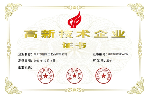 近日,东阳市旭东工艺品有限公司(以下简称旭东红木)成功被全国高新技术企业认定管理工作领导小组办公室认证“国家高新技术企业”,实现东阳木雕红木家具行业“国家高新技术企业”零的突破。数字化和高质量发展是推动红木行业发展的重要动力,旭东红木通过引入先进的数字化技术,加强品牌建设、实现高质量发展。