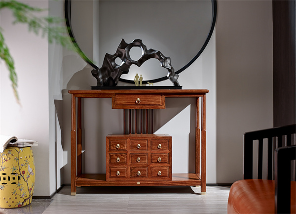 上方的展示区可摆放艺术品、衣物或绿植等物品,能在上面摆放福禄寿三星、连理双鱼等传统元素的摆件,让新年的到来更加热闹非凡。下方的九个小柜能轻松收纳钥匙、纸巾、洗手液等日常小物件,方便随时取用,让生活更加井然有序。