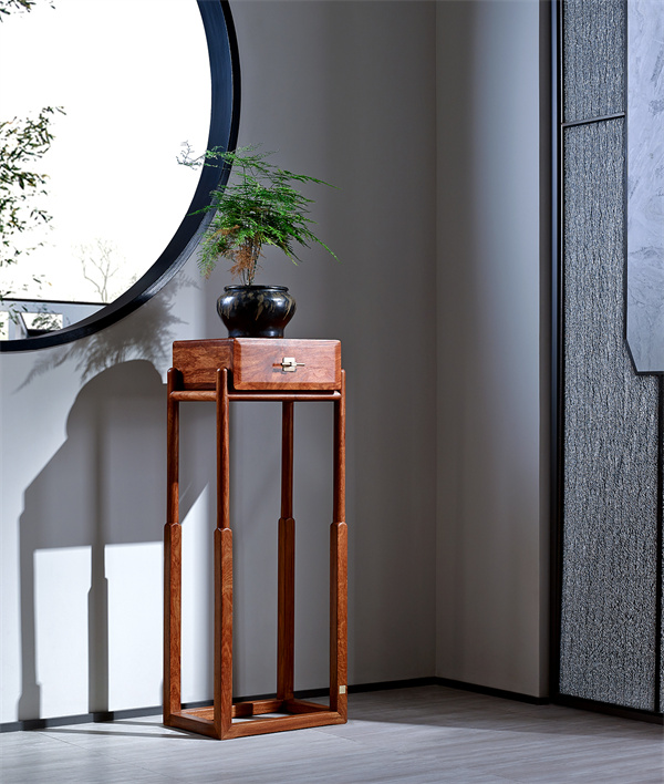 春节怎能少得了一盆盛开的花卉?东遇家居《观己2号》花架造型自然简单,架构稳重而空灵,线条优美大方,为年花提供了最佳的展示空间,也让整个家居洋溢着年味。