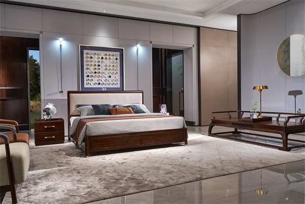 东遇家居《嘉遇大床》,采用安哥拉紫檀,经过精细设计和多次打磨,床体稳固且质感十足,彰显高贵典雅的品质。