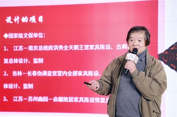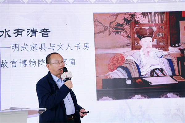 全联艺术红木家具专业委员会专家顾问、故宫博物院研究员周京南通过《山水有清音——明式家具与传统文人书房》主题分享,对明式家具的进行深入解读,阐述了传统文人书房的营造理念与审美追求,为现代家居设计提供了宝贵的借鉴。
