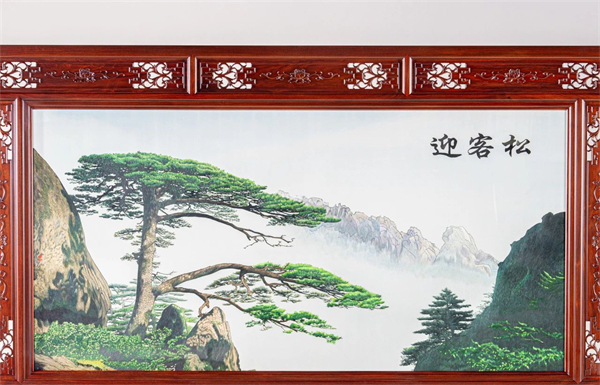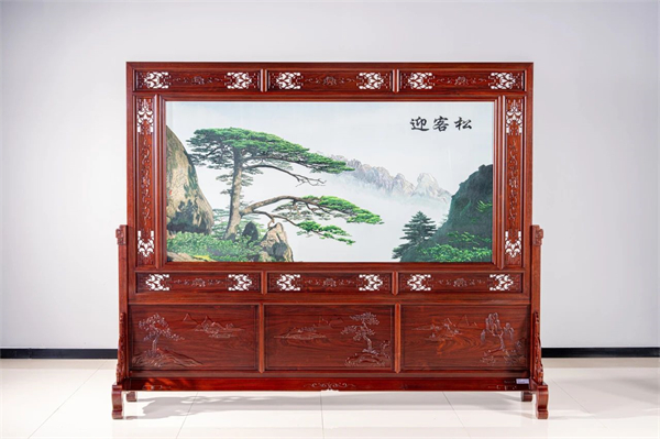 这三者结合,绣着迎客松的苏绣屏风便应运而生,成为了家居空间中的一道独特风景线。