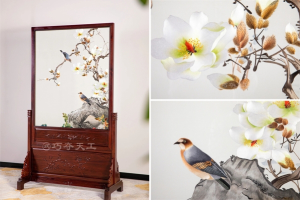 除了它的实用性,苏绣屏风还具有极高的艺术装饰性价值。作为文化遗产之一的苏绣,被誉为“东方艺术明珠”。