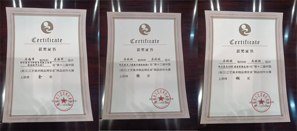 近日,在首届浙江省历史经典产业展暨第十二届中国(浙江)工艺美术精品博览会上,御乾堂红木参展作品《田家青同款三围独板直腿罗汉床》以其古朴典雅的造型和细腻入微的工艺,荣获金奖;《紫檀万福纹柜格》以其寓意吉祥的图案和精湛的木工技艺,荣获银奖;《24K黄金紫檀交椅》凭借其独特的创意和奢华的材质,荣获铜奖。