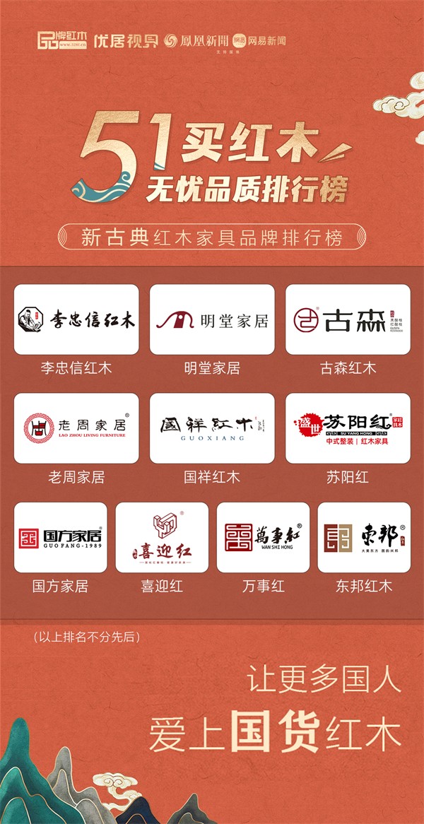 李忠信红木、明堂家居、古森红木、老周家居、国祥红木、苏阳红、国方家居、喜迎红、万事红、东邦红木。