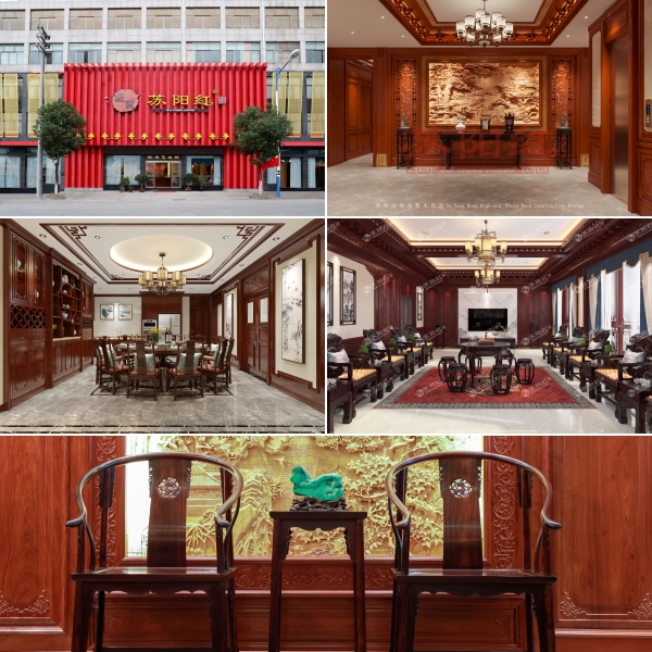第三家,古森红木,主营黑酸枝·红酸枝红木家具。产品以新古典为主打风格,在造型、雕饰上保留70%的古典家具文化,又添加了30%的现代元素,在增添舒适感、现代感的基础上,又兼顾传统家具的精致优美,更符合当下的审美需求与消费潮流。