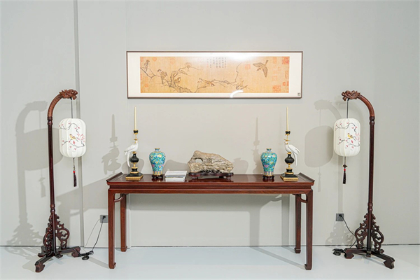 中堂的一侧亦别出心裁,围绕“鸟”的主题,用画作、烛台、灯笼,打造了一处古典而别致的室内景致。