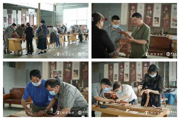 在参观过程中,徐总不仅为嘉宾们详细解读了每一件家具的设计理念、制作工艺,更用幽默风趣的话语将这些故事娓娓道来。