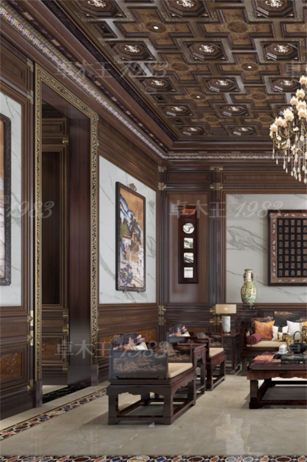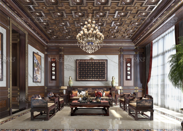 本案红木整装休闲厅,从设计到落地,都将中国传统建筑文化元素、天然的红木选材和美学艺术品作为设计师的重要表达手法,带给居者更加舒适的体验。