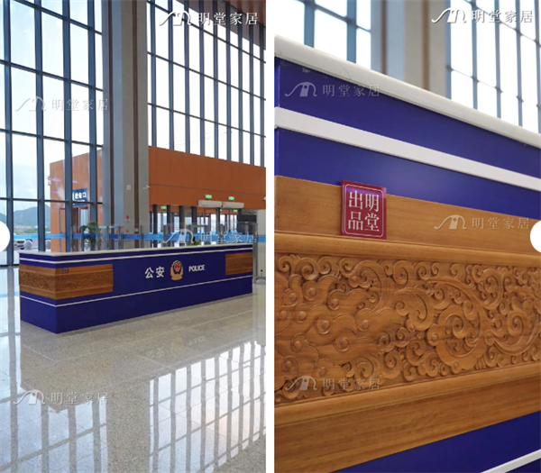明堂家居联合工艺美术大师,匠心独运地为横店高铁站量身打造了三大原创木作艺术品。贵宾接待室的新宋式东韵沙发、安检大厅的雕花报警台以及入站口独具特色的木结构站岗亭,无一不彰显着明堂家居对传统文化的尊重与现代创新的追求。