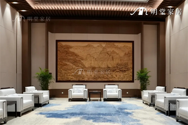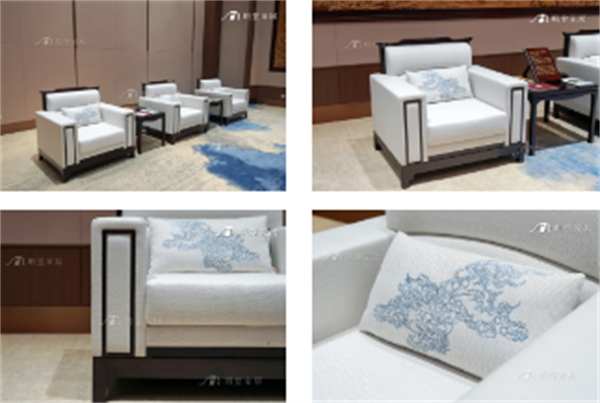 而在贵宾接待室陈设的东韵沙发,则以宋代官帽椅为灵感,结合东阳古建屋檐元素,并在设计中巧妙地融入人体工程学的智慧,使坐感更加舒适;精致的软包工艺,不仅提升了沙发的整体质感,更贴合了现代人对于美学与功能并重的追求。