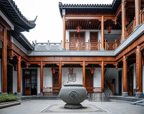 庭院楼阁,雕梁画栋,古朴雅致,尽显中式庭院之精髓。