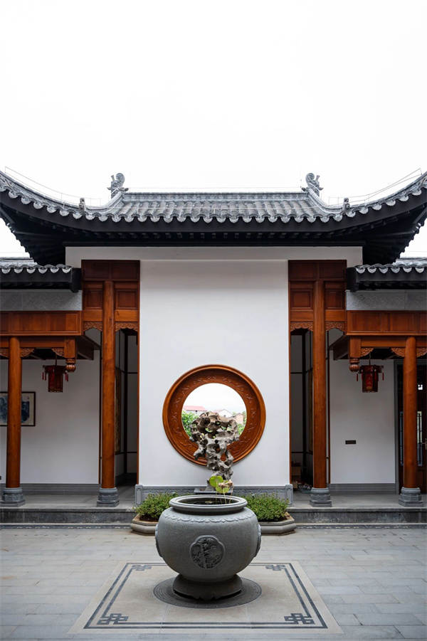 院内小心思颇多,照壁镂空可见太湖石一角,饰以木雕,既典雅,又古朴。