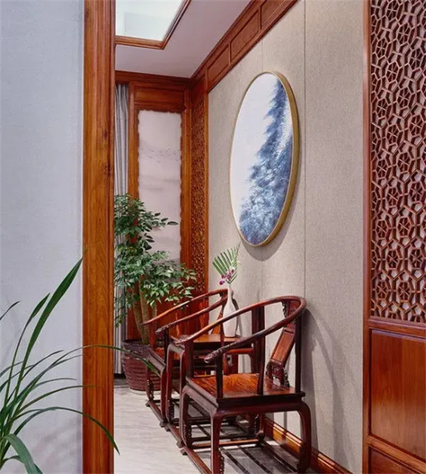 把满载着传承基因的老木带进新居,用匠心为老物件赋予新生,在空间中的各个角落置入记忆的片段——在客厅背景墙上的拼接木板画如同一扇连通时空的窗,窗外岁月,窗内人生。