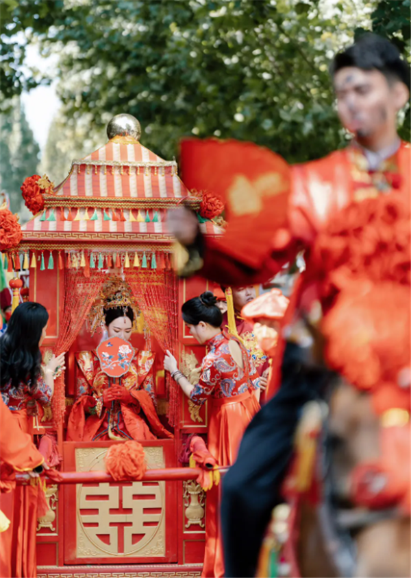 这几年,特别流行中式婚礼,不管是凤冠霞帔还是八抬大轿,都是热门话题。新郎官骑着高头大马,敲锣打鼓地迎娶新娘更是年轻人喜爱的项目,回头率爆棚。
