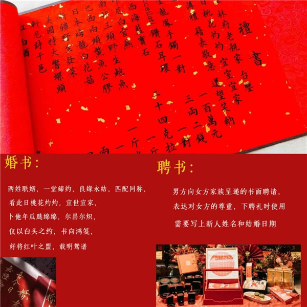 今天就带大家看看传统中式婚礼,三书六礼、四聘五金、八抬大轿、十里红妆……一一说过去太过累赘,咱今天只简单说说。