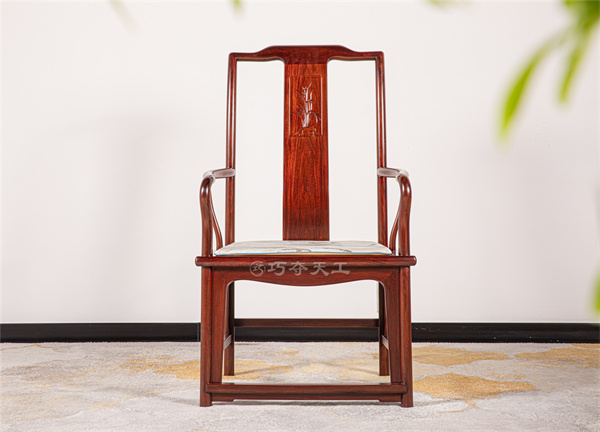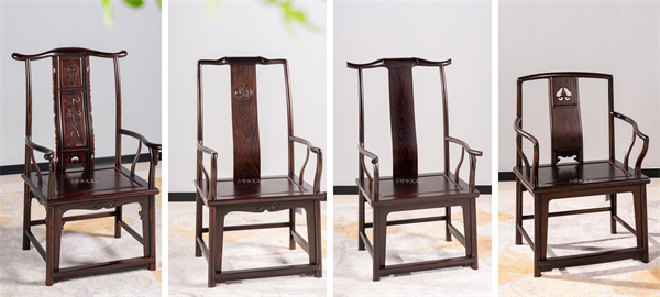 官帽椅以其造型酷似古代官员的官帽而得其名,根据扶手前端和搭脑两端是否出头又分为“四出头官帽椅”和“南官帽椅”。