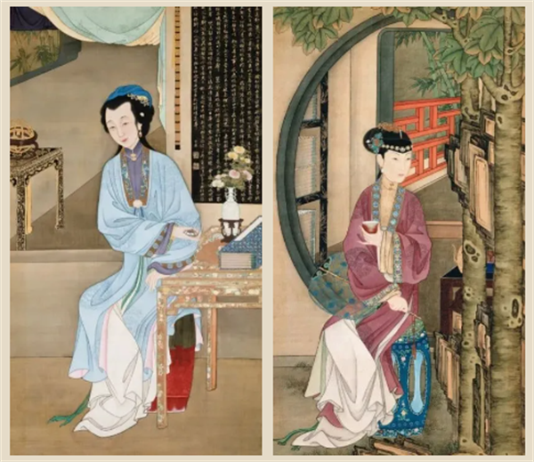 《十二美人图》为雍正帝尚未登基前(雍亲王胤禛)所收藏的十二幅美人图,描绘了12位身着汉服的宫苑女子观书、品茶、赏蝶等生活情景,其中展现的清宫女子的服饰、摆件、器物、家具等都非常的写实逼真。