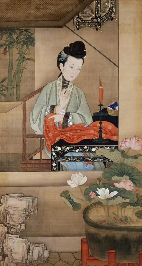 《十二美人图》中《烛下缝衣》的场景便是出现了玫瑰椅。