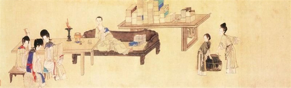 图中所示的环境、衣着都清楚交代了场景与季节,家具细节的描述也非常细腻,其中出现了南官帽椅和坐墩的身影。