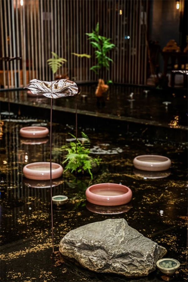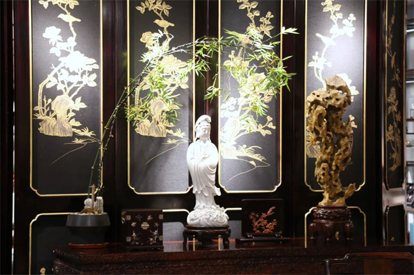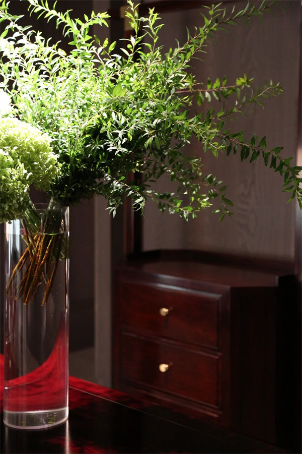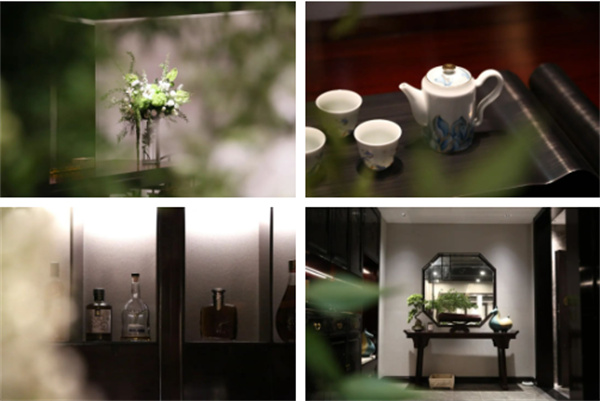 陈设布局也注重构图的主次感、层次感、韵律感。从正面视角审视,元素组合常呈现三角形构图,通过高低错落、前后遮挡的技巧,创造出既丰富又稳定的视觉体验。