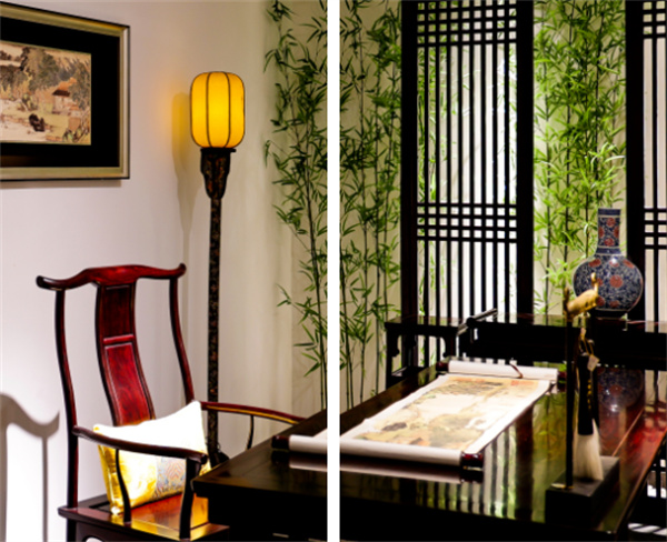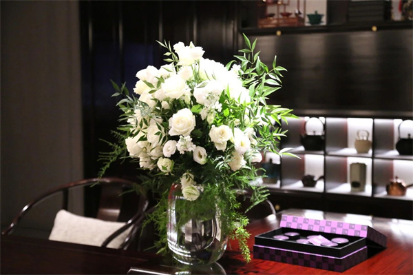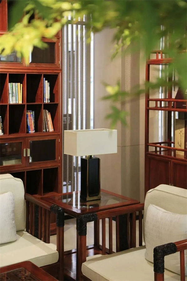 友联·家巧妙运用软装元素,通过对称与均衡协调的手法,营造出既和谐又不失生动的装饰效果。例如,圈椅的对称排列不仅赋予空间韵律美感,搭配方桌上点缀的插花瓷器,更添一抹灵动变化。