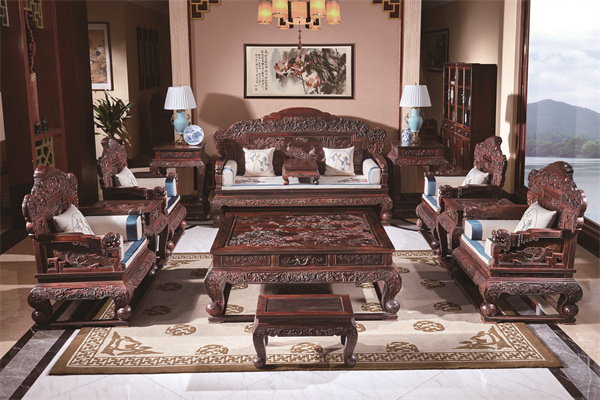 在产品材质上,国方家居精选大红酸枝、缅甸花梨、黑酸枝等珍贵木材,依据木材纹理特点并结合传统家具的造型精选木料制作。每一件家具在形、艺、材三方面都力求极致,展现了红木家具的独特魅力和精湛工艺。