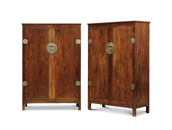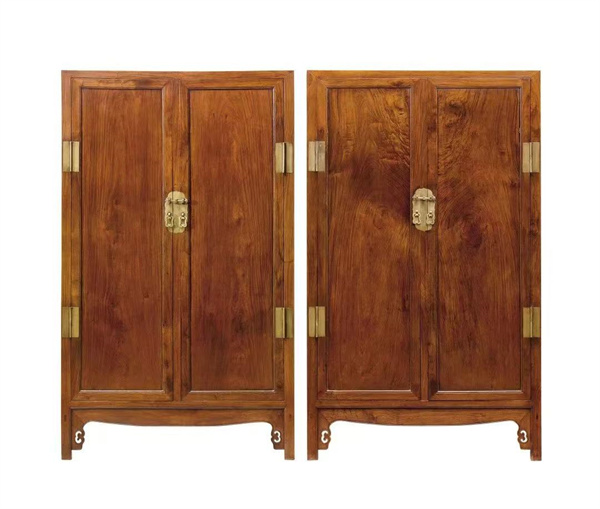 2015嘉德秋拍,清早期·黄花梨方腿圆角柜(成对),柜门板心也取自同一树,但均为两拼板。成交价:552万元