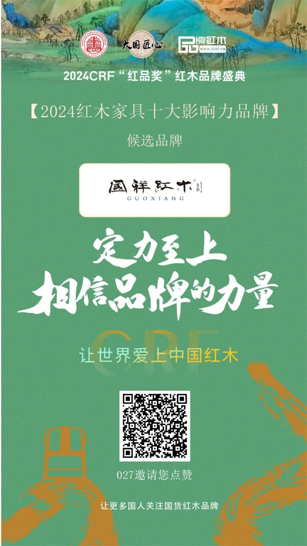 2024 CRF‘ 红品奖’红木品牌盛典点赞重磅开启!国祥红木邀您来点赞!