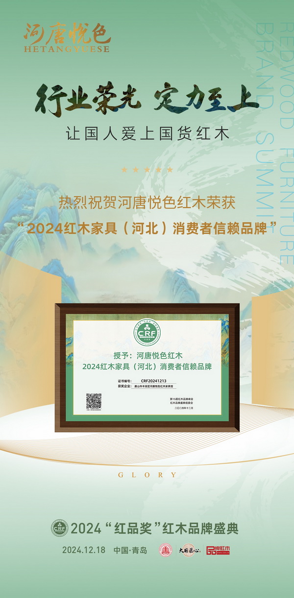 “红品奖”作为红木家具行业的权威奖项,旨在表彰在品质把控、诚信服务、市场口碑等方面表现优异的红木家具品牌。河唐悦色红木凭借其精选芯材、零白皮辅料、纯榫卯工艺以及对原木原香原工艺之美的极致诠释,成功赢得了组委会的认可。