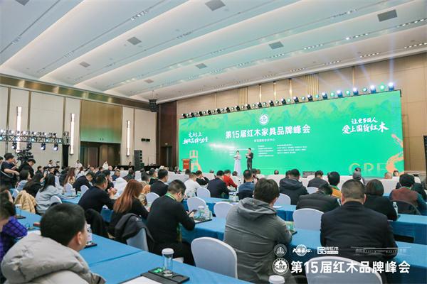 第15届红木品牌峰会现场盛况,峰会由中央电视台节目主持人肖贵宁、梁慧敏联袂主持