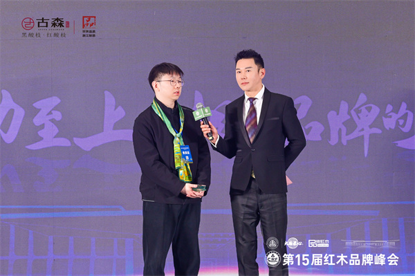 古森红木总经理吴建宇获评“2024红木家具杰出青年企业家”,并接受央视主持人肖贵宁采访