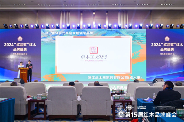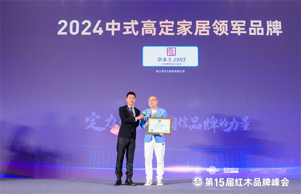 本届峰会以“定力至上 相信品牌的力量”为主题,同期举办2024“红品奖”红木品牌盛典,浙江卓木王控股集团有限公司(简称卓木王)荣获“2024中式高定家居领军品牌”荣誉,卓木王总裁杜长江上台领奖并在台上接受央视主持人肖贵宁的采访。