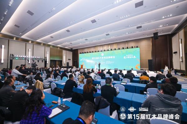 第15届红木品牌峰会现场盛况,峰会由中央电视台节目主持人肖贵宁、梁慧敏联袂主持