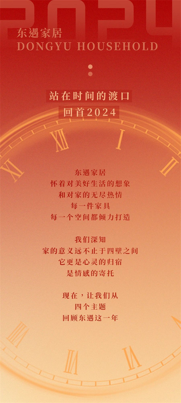 展望2025,东遇家居矢志不渝,将继续在探索美好人居的征途上砥砺前行,让每一位追求高品质生活的您,都能在东遇找到属于自己的美学家居、理想生活。