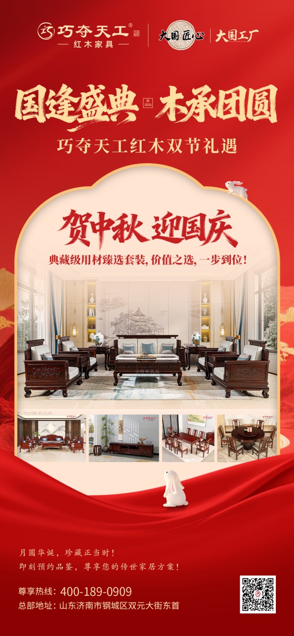 厌倦了景区的人山人海?我们为您提供了更好的选择,红木家具企业双节特惠专场!在这里,您不仅能享受一份清幽雅致的假期时光,更能以惊喜价格,将承载着匠心与传承的红木艺术品带回家。