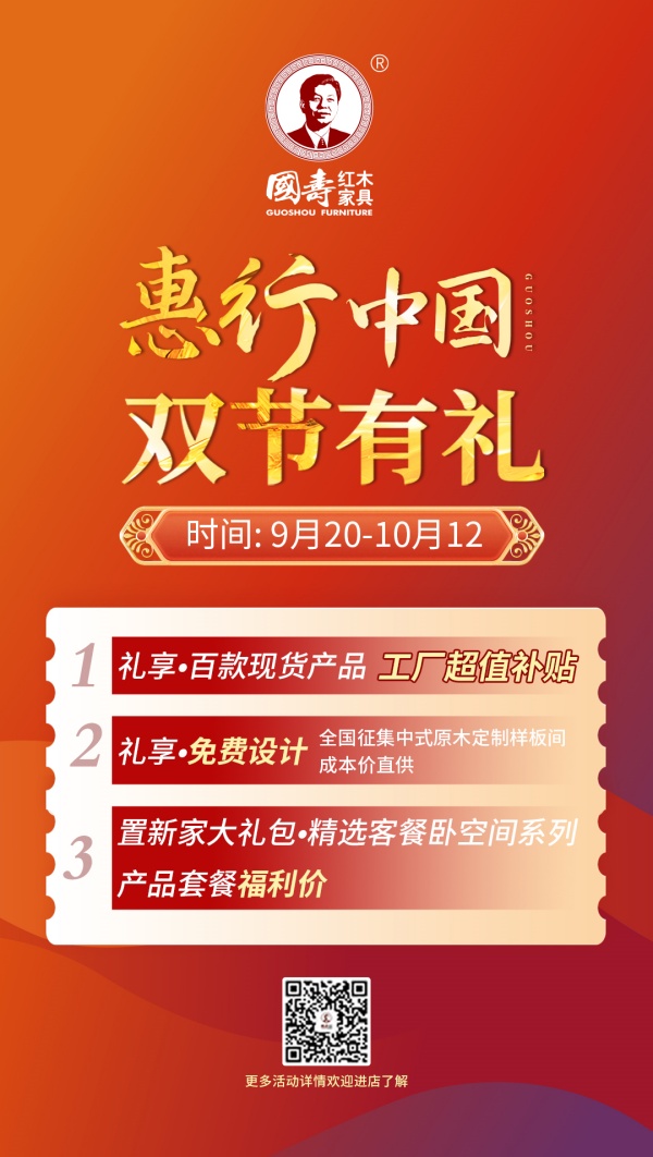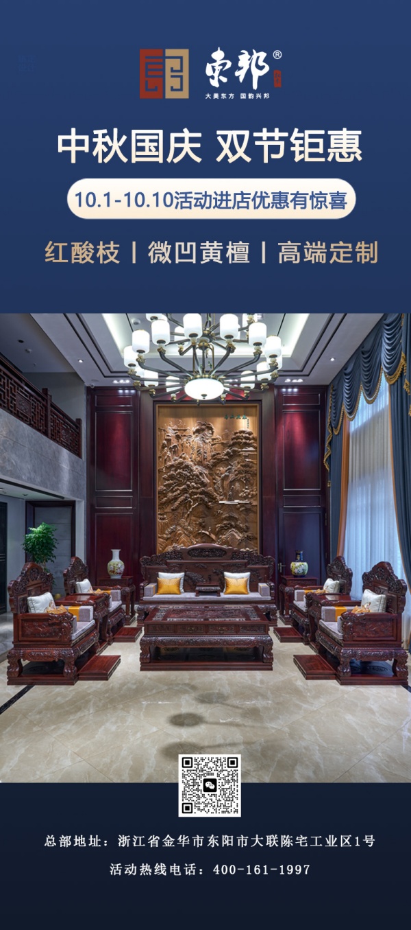 1.双节同庆,诚挚邀请您亲临品鉴,精选二十七年专研的微凹黄檀精品家具。