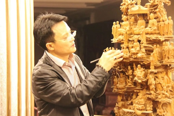 1982年,林庆财转业返乡,在父亲与兄长的支持下,开办了一家专门制作木雕佛像的小作坊。凭借其作品雕琢精妙,产品远销台湾、日本、新加坡及东南亚等地,备受客户青睐。至1988年,这座小作坊已发展成全国第一家檀香木雕阁——庆财艺雕厂,标志着林庆财木雕事业的企业化发展迈出了坚实的一步。