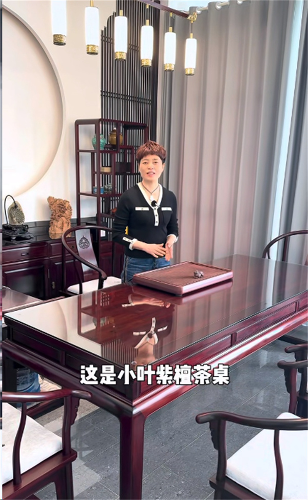 一是“材”之珍稀与精粹。葛洪亮红木秉持“六面清”的选材标准,对每一块原木去芜存菁,只选取纹理瑰丽、质地均匀、无瑕疵无白皮的精华部分。即便是边角料,也惜物如金,将其巧妙融入设计,延续其自然灵性。例如小叶紫檀茶桌,便是选用印度小叶紫檀的二瞟料制作,确保料质高油高密,色泽深邃华美。