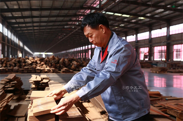 作为中国红木行业的领军企业,巧夺天工坚持“材艺双臻”。从全球优质产地严选国标红木原材,仅采用大树主干料,对白皮“零容忍”,所有家具部件均一木而开、无拼无补,以近乎偏执的选材标准,确保每一件作品的纯净性与传承潜力。
