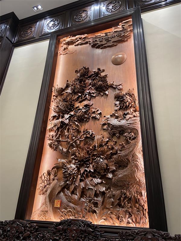 背景墙:木雕画卷,寓意深远