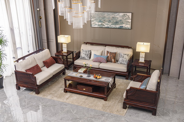 古森红木《雅韵沙发》,采用企业核心材质阔叶黄檀(黑酸枝)打造